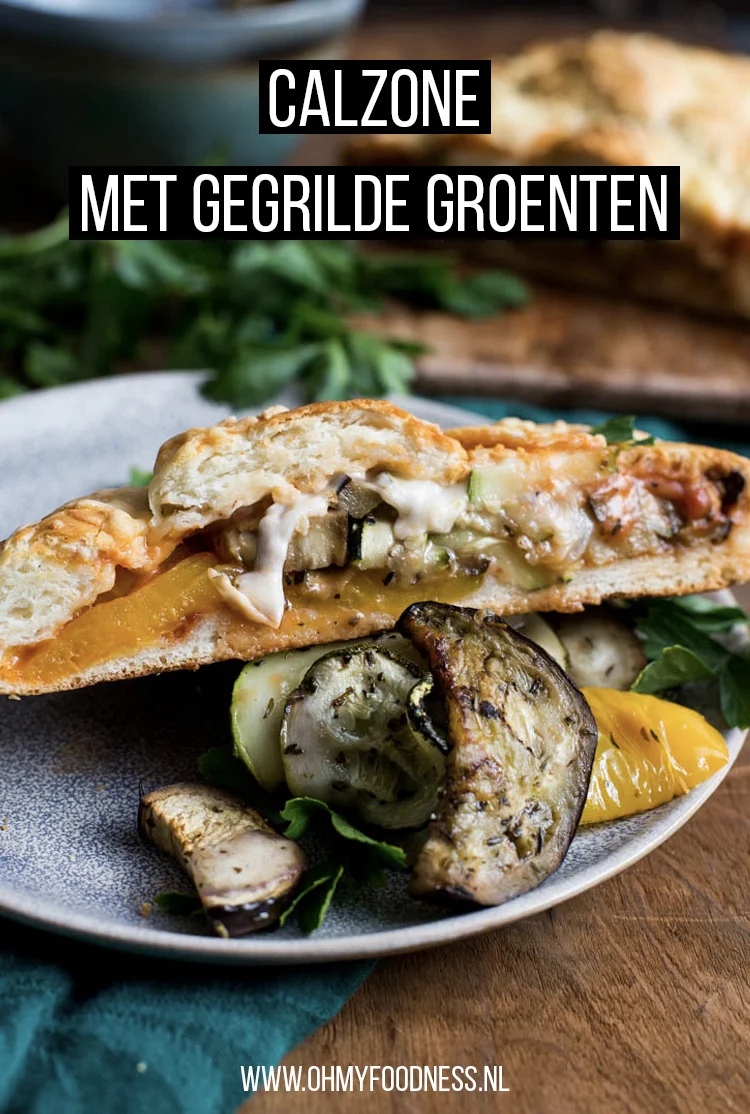 - Vouw de andere helft van het pizzadeeg vervolgens over de gegrilde groenten en duw de randen van het pizzadeeg goed dicht. Ik heb de randen een keertje omgerold om er zeker van te zijn dat de Calzone niet open zou gaan in de oven.