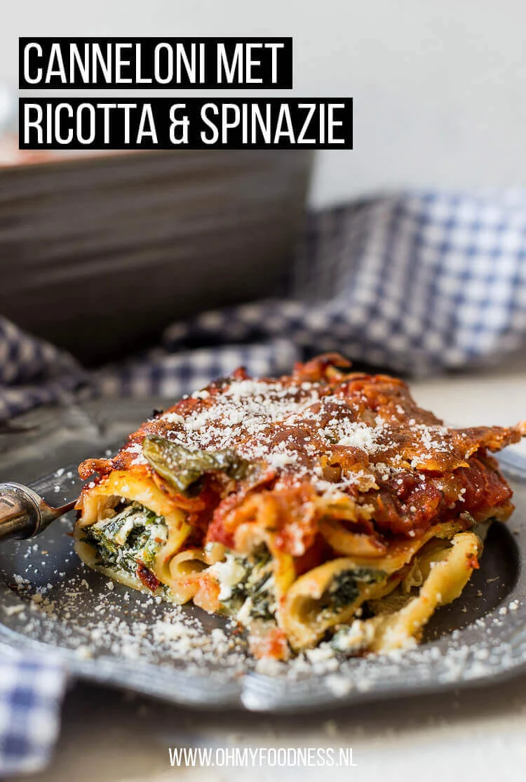 Een vegetarische cannelloni saai? Zeker niet! Deze cannelloni met spinazie en ricotta is zo lekker hartig en stevig van smaak dat ik de eventuele toevoeging van vlees totaal niet heb gemist. Ik raad je eigenlijk ook aan om het vlees te laten voor wat het is, heb je echt niet nodig bij dit gerecht!