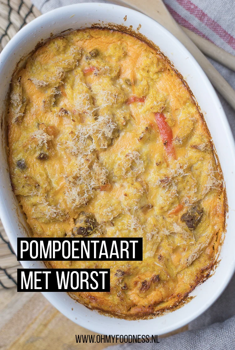 Wel is dit gerecht totáál anders uitgepakt dan ik had gedacht. Bij een taart verwacht ik deeg met vulling. Er komt sowieso al geen deeg kijken bij dit recept en het hele idee van taart is ook redelijk ver te zoeken. Deze pompoentaart met worst doet me meer denken aan de combinatie van pompoenpuree en pompoensoufflé. Wel lekker hoor, de smaken matchten super goed bij elkaar, maar wellicht niet helemaal wat je ervan verwacht.
