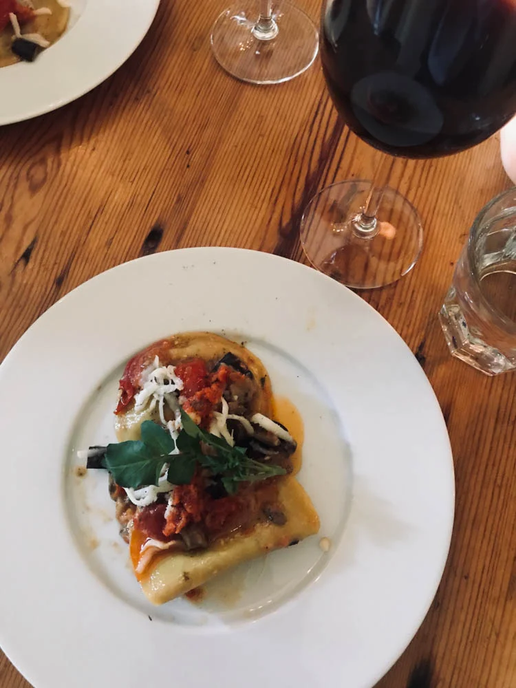 Op naar Cosi, een Italiaans restaurant waar ik al eens geweest was. Dit leuke plekje doet aan als huiskamer en heeft ook verschillende kamers (daar kwam ik nu pas achter). We besloten door te lopen en achterin plaats te nemen. We kregen een héél lekker gerecht voorgeschoteld, met aubergine, tomaat en parmezaan. Eigenlijk gewoon een heel lekker heel goed Italiaans bordje. Met erbij een glas rood. Nog eens terug naar Cosi besloot ik na dit bezoek, zo lekker!