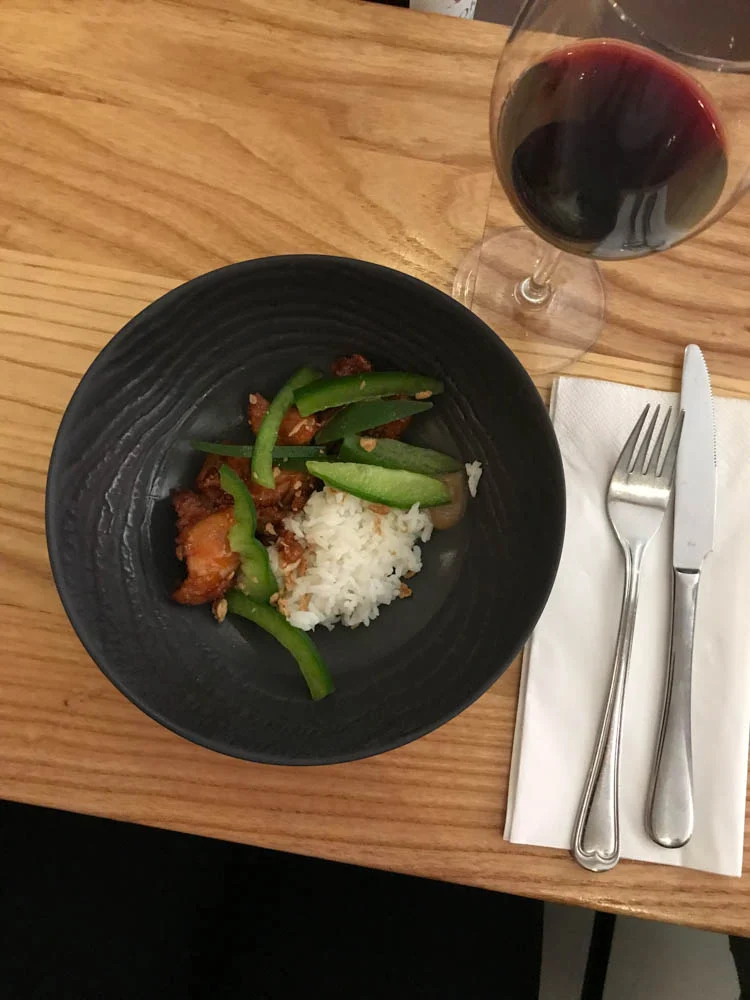 Na Cosi wandelden we meer het centrum van Arnhem in en aten we bij Rean Lee, een Aziatisch restaurant. Niet groot en we kregen een plekje aan de bar, knus wel. En ook al ziet dit gerecht er misschien niet heel bijzonder uit (krokante kip met rijst en zure paprika), het was heel smakelijk.