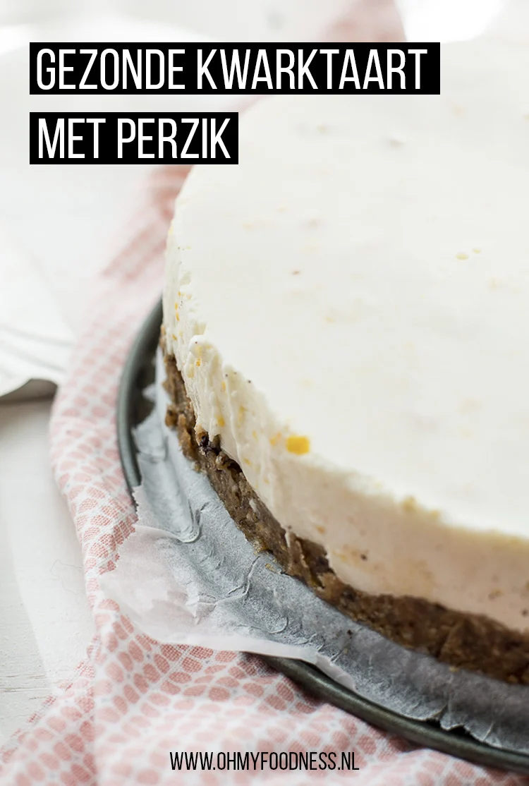 Oh man wat ben ik gek op taart. Er staan al zoveel taartrecepten op OMF en ik krijg er ook nooit genoeg van. Toch missen er wel wat gezonde taarten in het rijtje. Logisch ook, ik maak liever een taart met goed veel boter en suiker maar deze gezonde kwarktaart met perzik is óók heel erg lekker. Het allerfijnste vind ik nog wel dat je deze taart guiltyfree als ontbijt kunt eten want in feite eet je een bakje kwark met granola maar dan in iets andere vorm. Voelt wel even gek hoor, een stuk taart voor het ontbijt afsnijden maar geloof mij: je went er snel aan. Je moet natuurlijk zelf weten voor welke gelegenheid je deze kwarktaart maakt. Ik vond het een hele fijne snelle to go als ontbijt op dagen dat Vic me niet zoveel tijd gunde om zelf te ontbijten, maar hij is ook hartstikke lekker als toetje of als taartje bij de koffie.