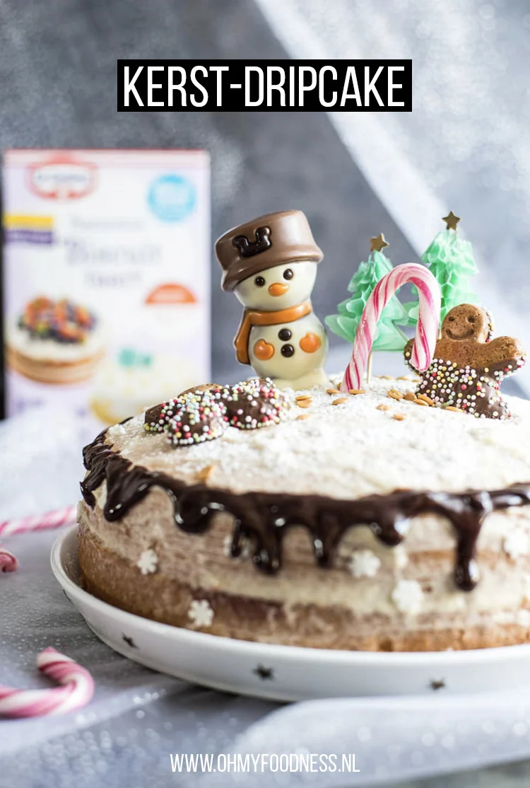 Na de Gingerbreadman brownies van twee weken terug en de feestelijke kerstcupcakes van afgelopen week, is het vandaag tijd voor de allerlaatste bak-inspiratie voor aankomende feestdagen. Maandag is het al kerstavond maar gelukkig geeft dit je nog meer dan genoeg tijd om deze super leuke Kerst-dripcake te maken. Hoe leuk is het om deze dripcake op tafel te zetten tijdens de kerstkoffie! In alle winkels vind je momenteel feestelijke kerstdecoratie en ik kon me dan ook niet inhouden om deze taart te versieren met gingerbread mannetjes, heerlijke chocolade, wat ‘sneeuwvlokjes’ en candy canes. Ik hield het nog vrij eenvoudig omdat ik een soort winter wonderland wilde creëren met deze taart, maar je kunt het natuurlijk zo gek maken als je zelf wilt. Gebruik eetbare glitters, Dr. Oetker Kerstfantasie decoraties, meer chocolade, gekleurde hagels, discodip of print wat toffe kerstdecoraties uit via Bakken.nl. Ga in ieder geval he-le-maal los want daar is het natuurlijk Kerst voor. Zelf heb ik ervoor gekozen om de taart in te smeren met vanille-botercrème en hem te vullen met kersenjam maar uiteraard kun je hier ook naar hartenlust mee variëren. Het basis biscuit dat je maakt met dit recept is dik genoeg om in drie plakken te snijden dus je kunt in plaats van één vulling ook lekker twee vullingen gebruiken.