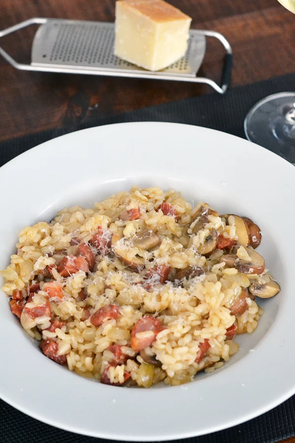 Ik ben gek op risotto! Goed idee die pittige worst, dat ga ik ook eens proberen.