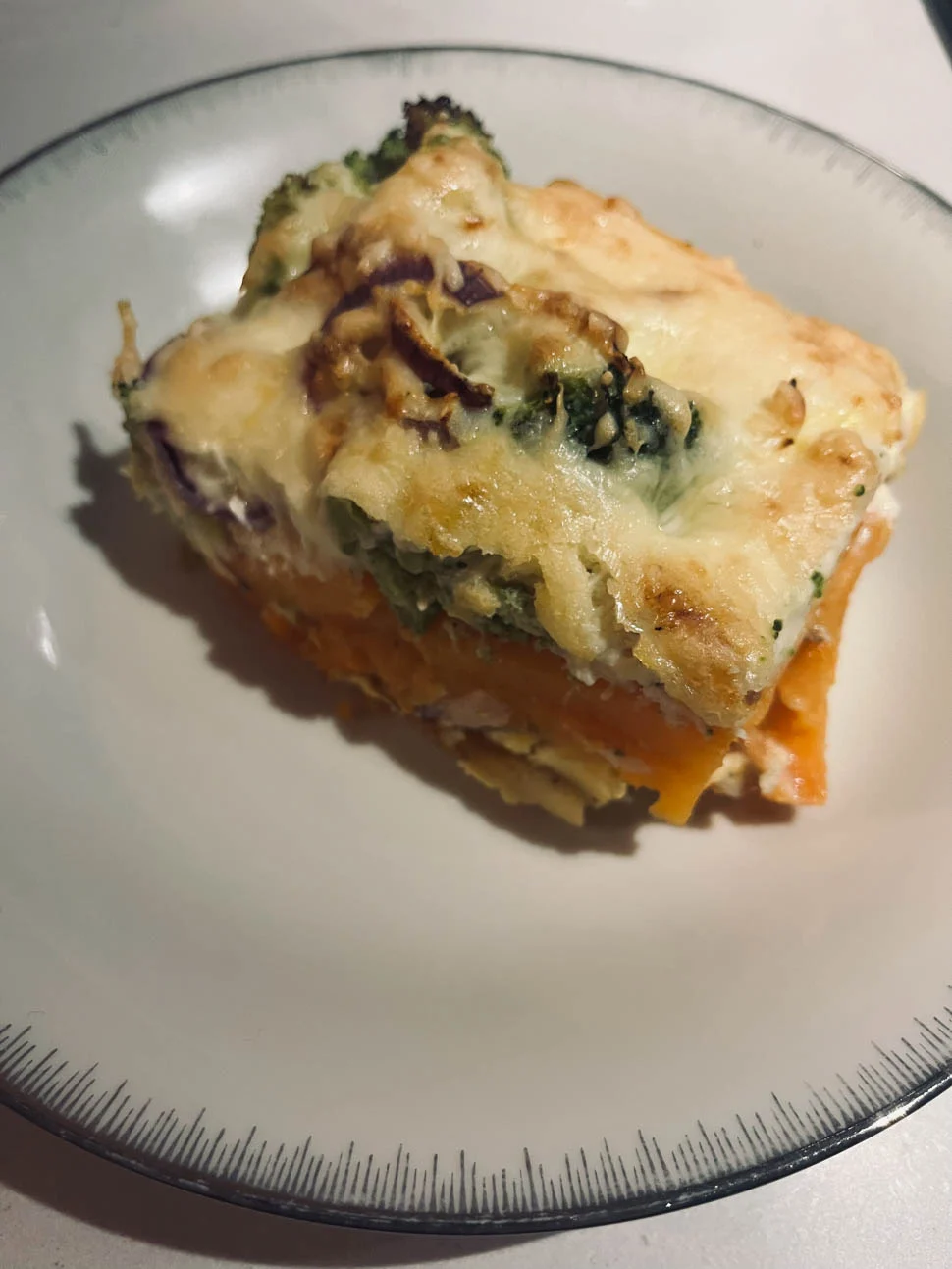 Ik ben groot fan van ovenschotels en maak ze dan ook regelmatig. Deze keer eentje met een behoorlijk Hollands tintje met broccoli, zoete aardappel, rode ui en erin gingen kaas en ei. En omdat het genoeg was voor twee dagen aten we er woensdag ook nog van. Ideaal.