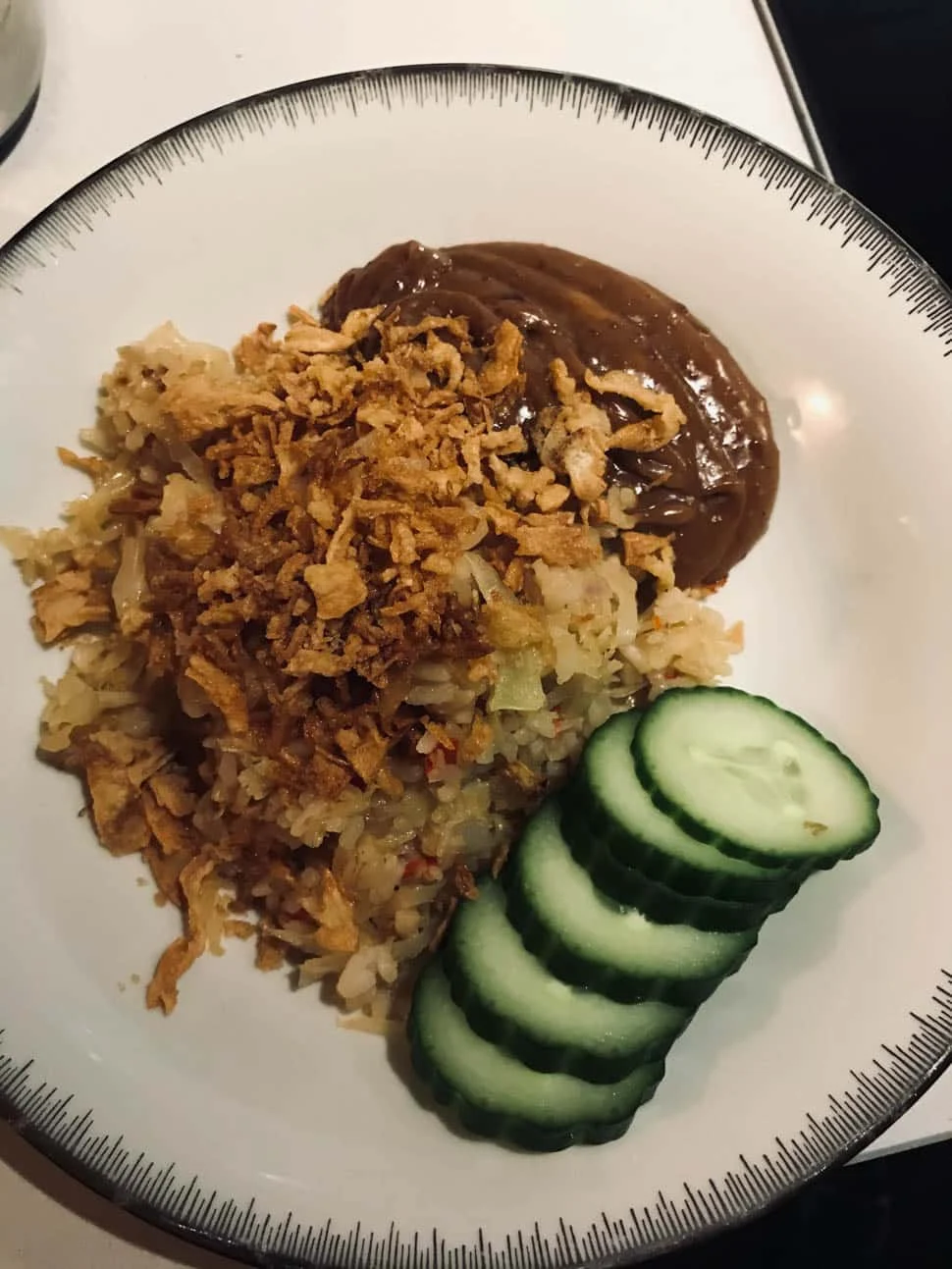 Ik was donderdag erg laat thuis omdat ik ben gaan sporten en daarna nog boodschappen deed in Apeldoorn. Praktisch wel omdat die Appie vlakbij de Barbell Club zit, maar koken deed ik pas om 21:15. Ik maakte een nasi met satésaus, komkommer en gebakken ui. Overigens deed ik deze keer alleen witte kool door de nasi, en natuurlijk gember, rode peper, ui en knoflook. En ketjap. Vrijdag aten we er nog een keer van.