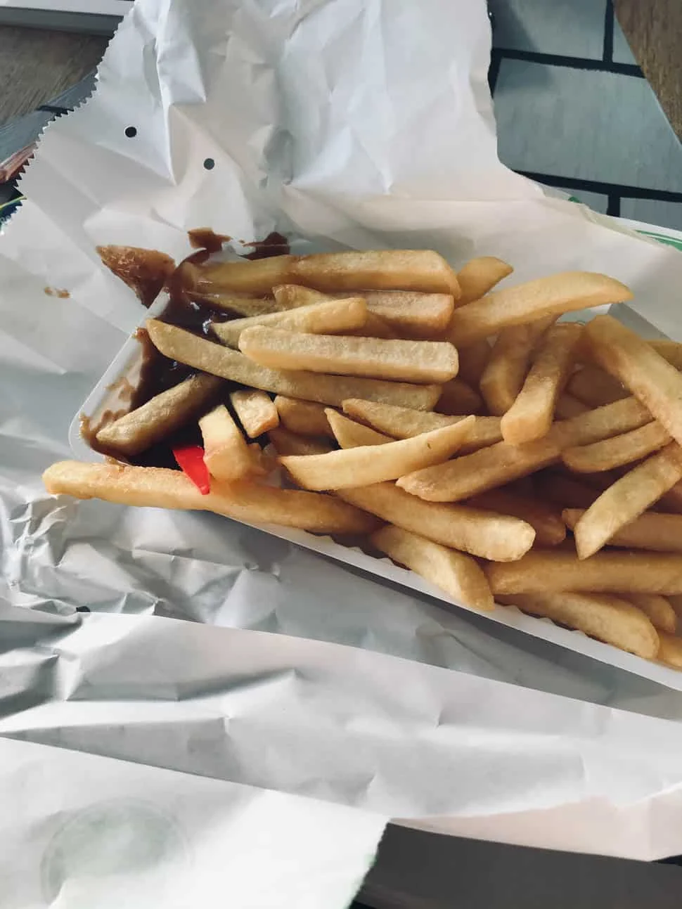 Ja en na de crematie was ik rond 18u thuis. Koken? Nee hoor, ging ik niet meer doen. Ik ben direct door gegaan naar een vriendin voor een (in mijn geval) alcoholvrije borrel, en ik nam een patatje mee.