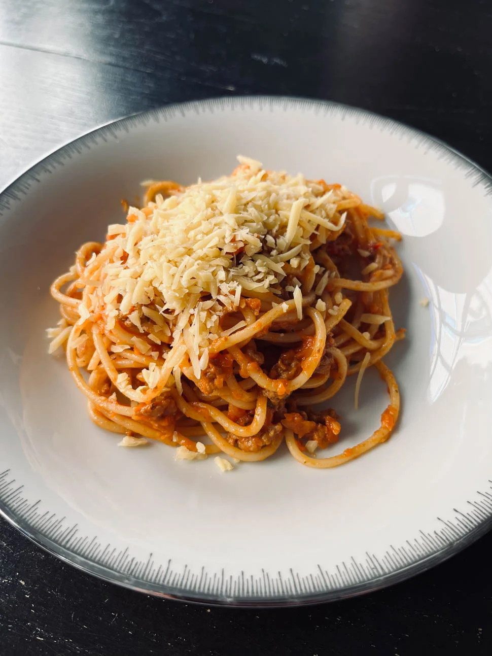 Onze kleine grote vriend wordt dinsdag 1 jaar (hoera!) en dat vierden we vandaag. Ik bakte gisteren twee taarten en was tussendoor druk met het ophangen van slingers, een boodschappenronde en het in huis halen van alles wat ik nodig heb voor zijn traktatie – and I love it. Hoe dan ook, mijn weekend begon vrijdag en het is nu zondagavond en het voelt alsof er tussen die twee momenten slechts een paar uur heeft gezeten. Dus dat er gisteren dus nog een zak bolognesesaus in de vriezer lag was i-de-aal.