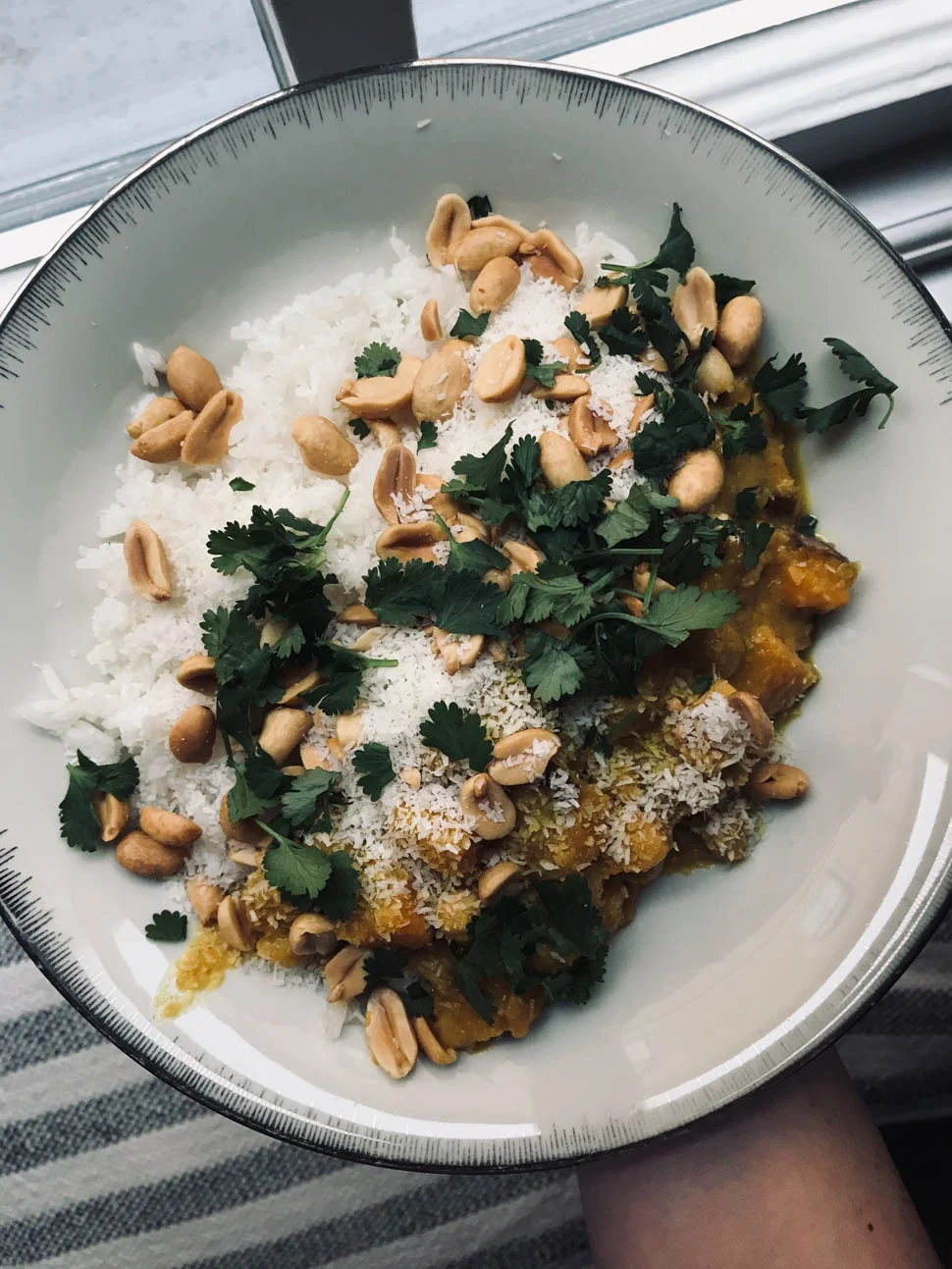 Ja dit was dus niet gepland. We hadden nog een bak met door Sabine gemaakte zoete aardappel curry in onze vriezer staan. Leek me handig voor als we een keer even geen tijd of zin hadden om te koken. Maar onze vriezer zat goed vol (met heeeeel veel ijsjes ;-)) en toen we er ook nog zes halfjes brood in kwijt moesten, besloten we de curry er maar uit te halen en deze ’s avonds te eten. De eetplanning schoof dus even op.