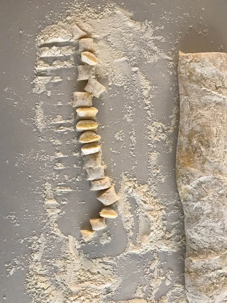 We kregen gisteren dus een fijne groep gezellige eters op bezoek, en dat vroeg om wat voorbereiding. Ik had al even geleden bedacht welke gerechten het moesten gaan worden en inmiddels had ik dus alle boodschappen in huis. Heb eigenlijk de hele dag in de keuken gestaan omdat ik onder andere ook zelf gnocchi wilde maken. Zie hierboven, een veelbelovend deeg.