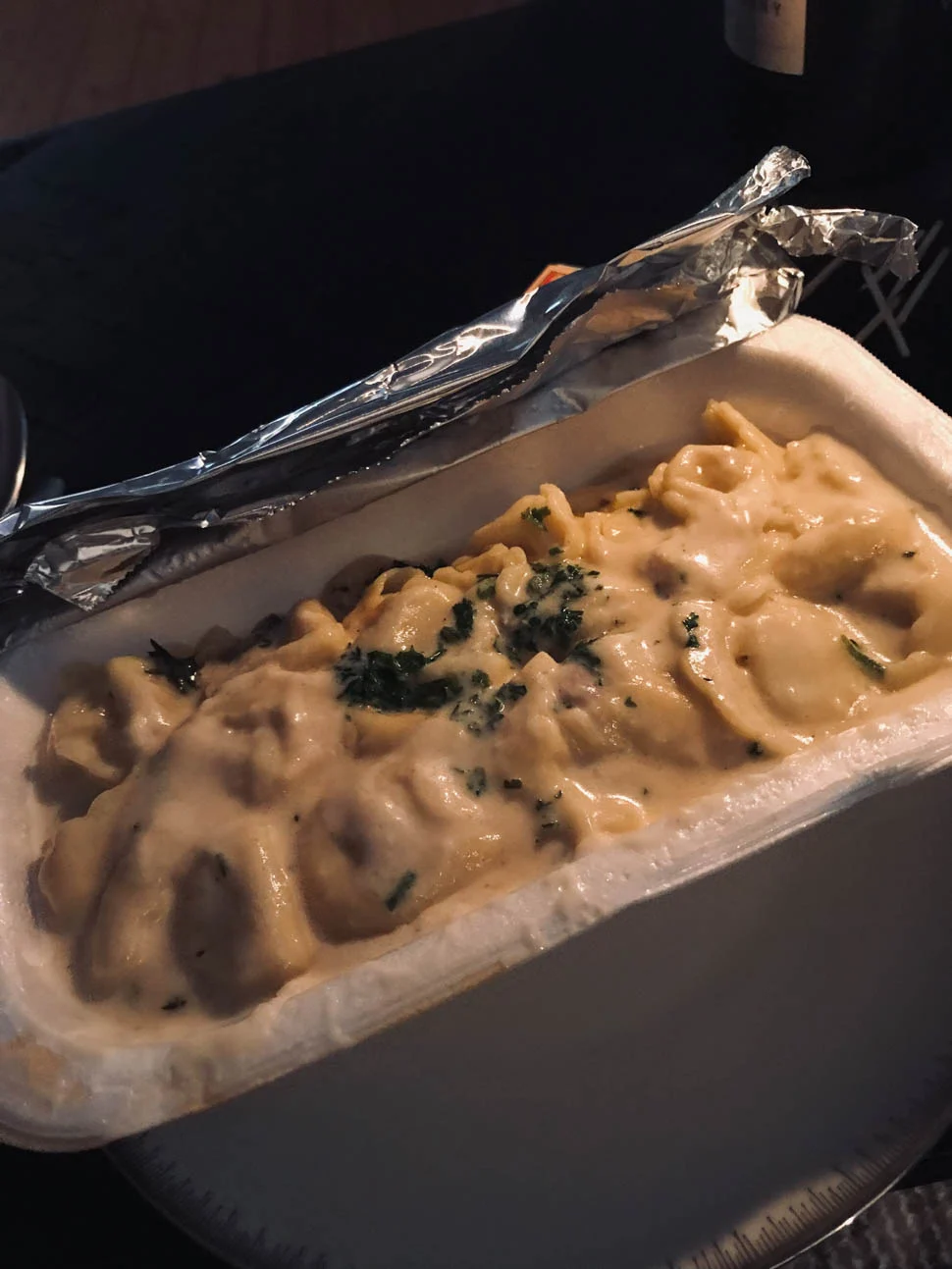 Ja een pasta vind ik heerlijk in het weekend maar er eentje zelf maken, dat mag duidelijk zijn, dat ging hem dus even niet worden. Het was even zoeken naar een tent die ook een lekkere pasta op zondagavond kon bezorgen (handig; in de Thuisbezorgd app krijg je NA je keuze te zien dat de betreffende toko gesloten is), maar het lukte. Ik koos voor een 4-kazen pasta en dat was heerlijk maar ik zat na vijf happen vol want MACHTIG jongens… Wel lekker :-)