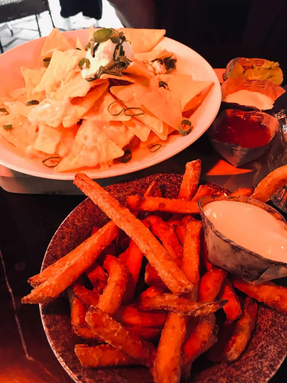 Een rondje markt met een vriendin afsluiten met een beetje borrelen bij Zus. Fijne zaterdagmiddag en -avond besteding. En bij een glas wijn hoort een schaal met nacho’s en zoete aardappelfriet, dus dit was gelijk mijn avondeten.