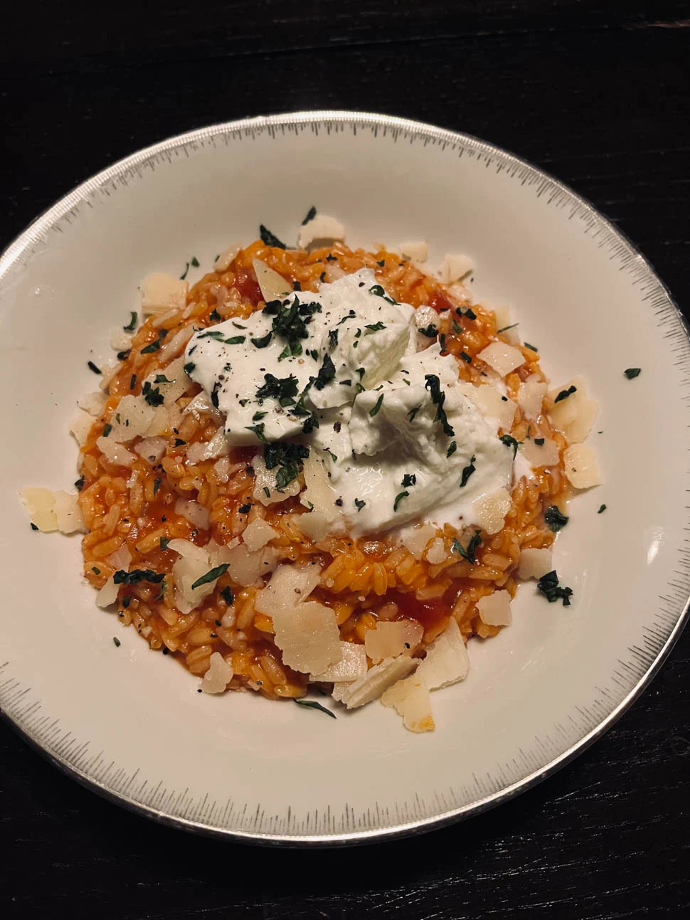 Voor de mensen die net als ik gek zijn op risotto, en een andere variant zoeken; deze met tomaten en buffelmozzarella is HEERLIJK. Makkelijk om te maken en heel lekker smaakvol. Overigens kun je ook voor burrata kiezen. En nooit te zuinig met de Parmezaan hè.