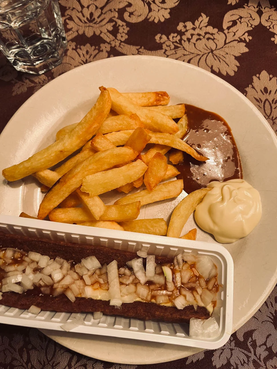 Vrijdag frietdag! Bij mijn ouders dan hė. En toen ik aangaf vrijdagmiddag al te komen, kreeg ik daar achteraan gelijk de vraag wat ik dan bij mijn friet wilde. Mijn vaste recept dus; een frikandel speciaal. En die pindacurry hè, van Hela. In huis halen hoor, dikke aanrader.