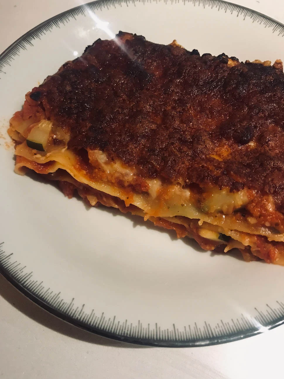 De left-over lasagne van zondag verschoof naar dinsdag. En die lukte heel goed. Ik maakte een tomatensaus met ui, knoflook, veel verschillende Italiaanse kruiden, honing, kappertjes, kaas en courgette. Flink wat lasagnebladen en afgemaakt met een lading mozzarella bovenop. Ik at er twee dagen van, Tobi at nog een keer het prakkie van m’n moeder.