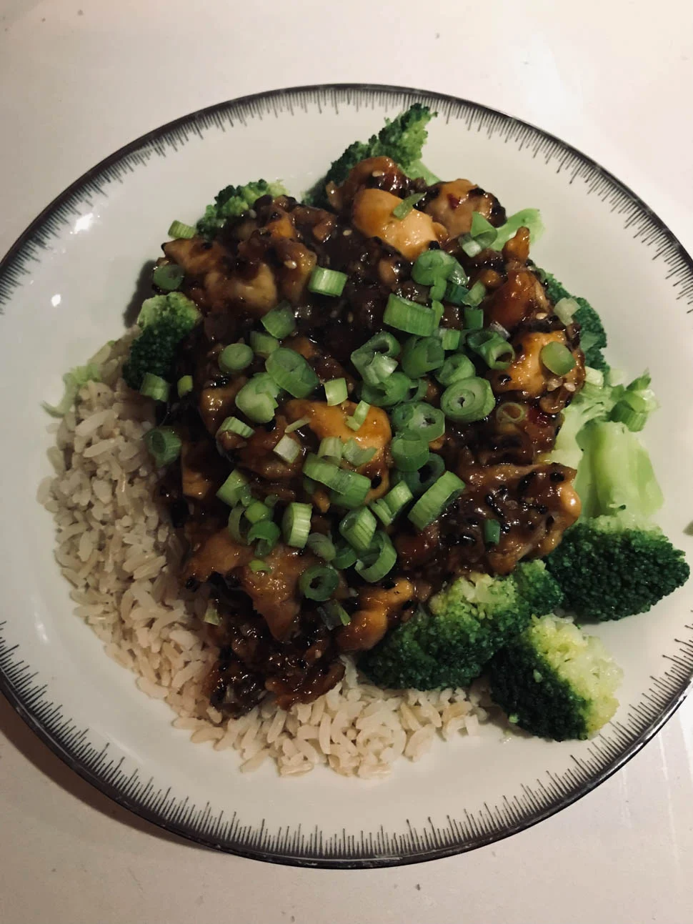 Ik maakte gisteravond sticky chicken, met daarbij rijst en gestoomde bloemkool. Een flink bordje vol zoals je ziet – was teveel hoor. Een lekkere hap, al pas ik de ingrediënten voor de sticky saus de volgende keer even iets aan. Die kon beter namelijk ;-)