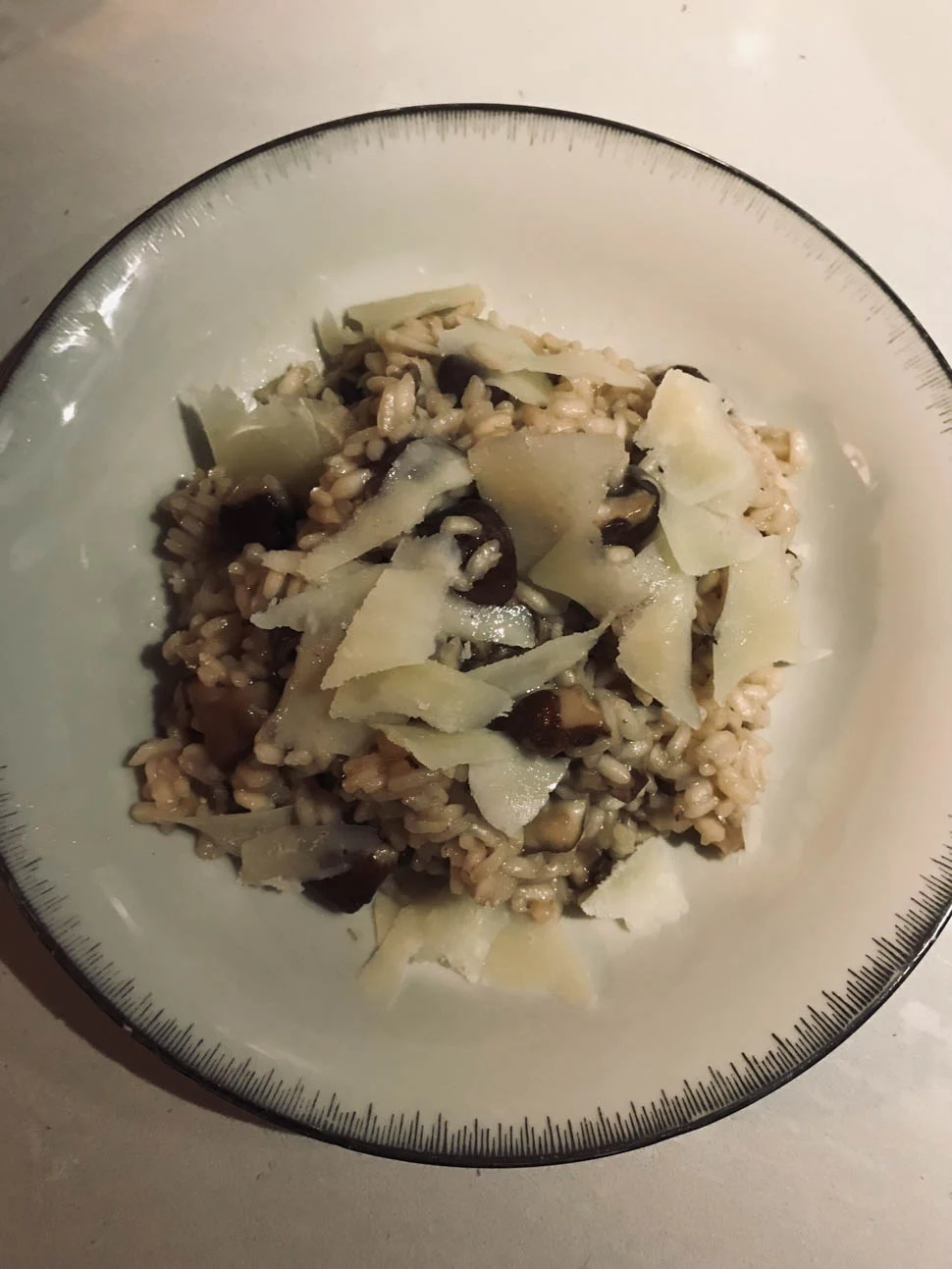 Ik maakte zondag een flinke pan risotto met kastanjechampignons en pecorino. Ik vind dat echt heerlijk comfortfood en perfect voor op een zondag. Bommetje is het altijd wel, maar heer-lijk. En die pecorino; ik eet altijd al voordat we gaan eten het halve blokkie op.