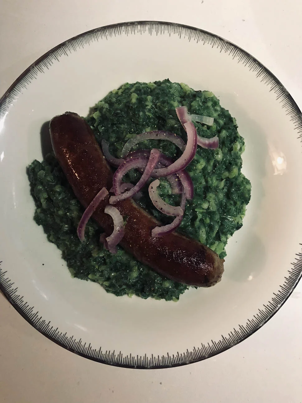 Het stamppotten seizoen is in volle gang en dat zorgt er ook bij ons voor dat er zo nu en dan eentje op de planning staat. Boerenkool vinden we allebei erg lekker maar om niet altijd dezelfde te maken, probeer ik zo nu en dan eens wat uit. Deze keer een Thaise variant. Dat zie je er niet aan af, maar er zit wat groene curry en een beetje kokosmelk door de boerenkool. Erbij geen rookworst maar een braadworst – dat had een Thaise curryworst moeten zijn maar de Appie waar ik kom, heeft niet altijd alles. Het was oké. Ik wil het nog wel eens maken maar dan ga ik het anders doen. Eentje om te finetunen kunnen we concluderen.