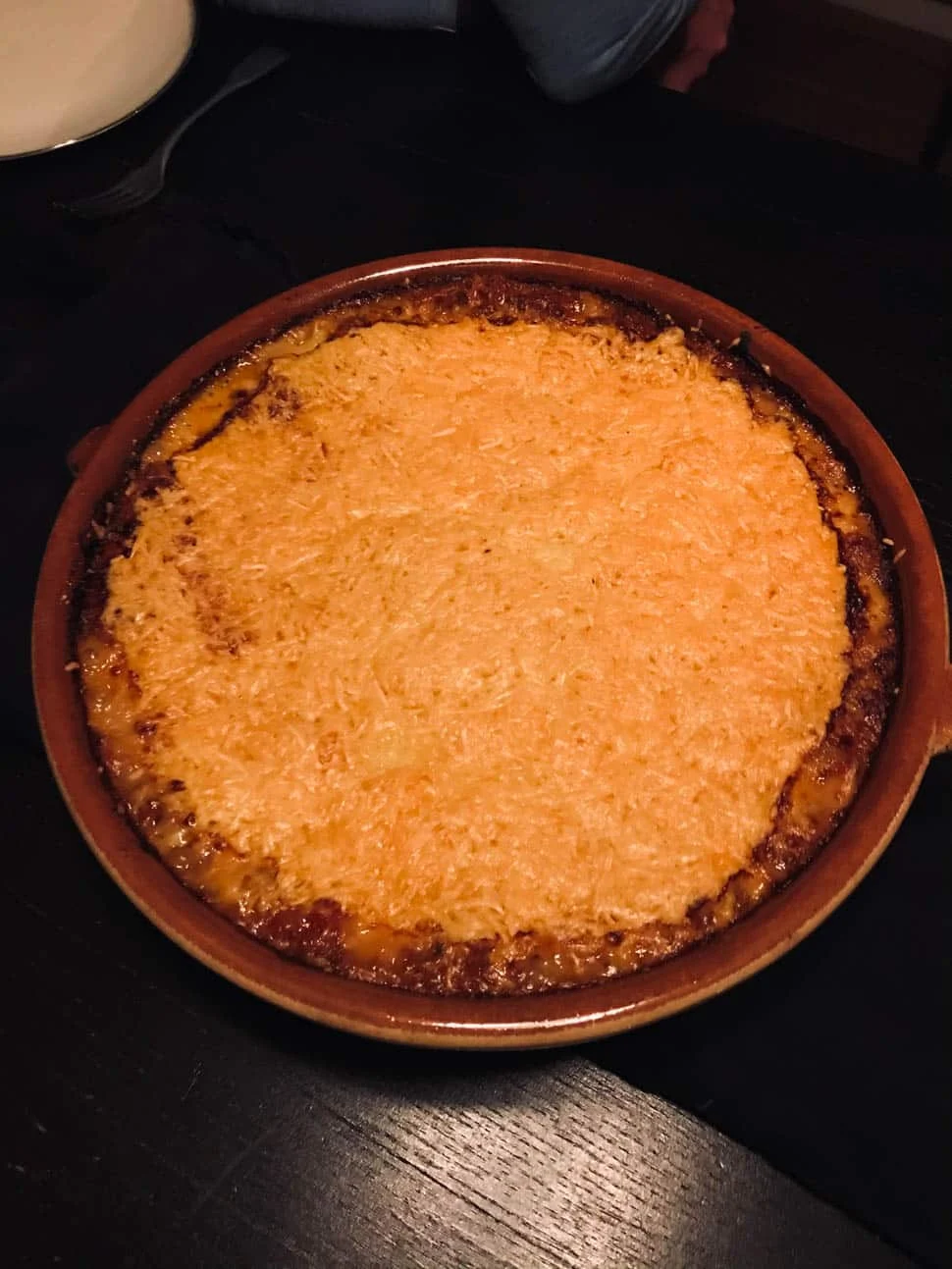 Ik wilde wel graag koken tweede kerstdag, maar niet te ingewikkeld. Iets van comfort food leek me lekker en toen ik Tobias vroeg waar hij dan zin in had zei hij; “De lasagne van mijn moeder”. Dus dat regelde ik, leek me een heel goed plan namelijk. Tobias’ moeder is al een aantal jaar geleden overleden en het recept voor deze lasagne heb ik ooit nog van haar gekregen. Het is een old skool variant, en het doet Tobias echt weer even aan vroeger denken. Uiteindelijk kwam de broer van Tobias ook eten dus die twee hebben nog net niet deze mega-schaal leeggegeten. Ongelofelijk hoeveel ze op konden.