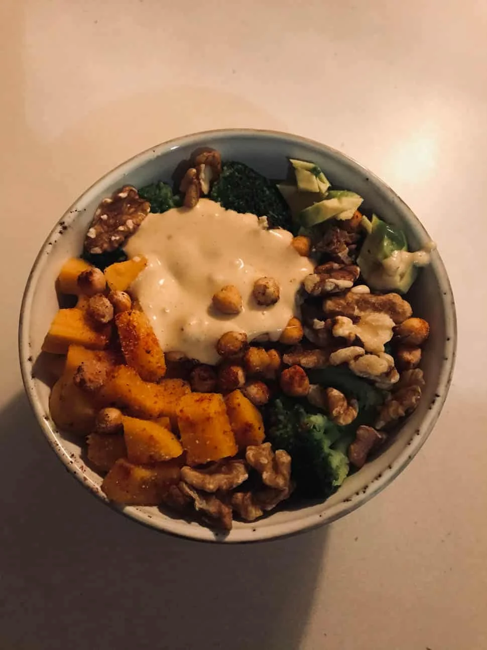 Vond het wel weer eens tijd voor een buddha bowl dus die maakte ik. Zo simpel is het. De inhoud varieert vaak wel, en deze keer maakte ik het met zoete aardappel, gekookte broccoli, walnoten, avocado, geroosterde kikkererwten en een misodressing. Misopasta, haal het in huis jongens. Echt een lekkere smaakmaker voor bij een gerecht zoals dit.