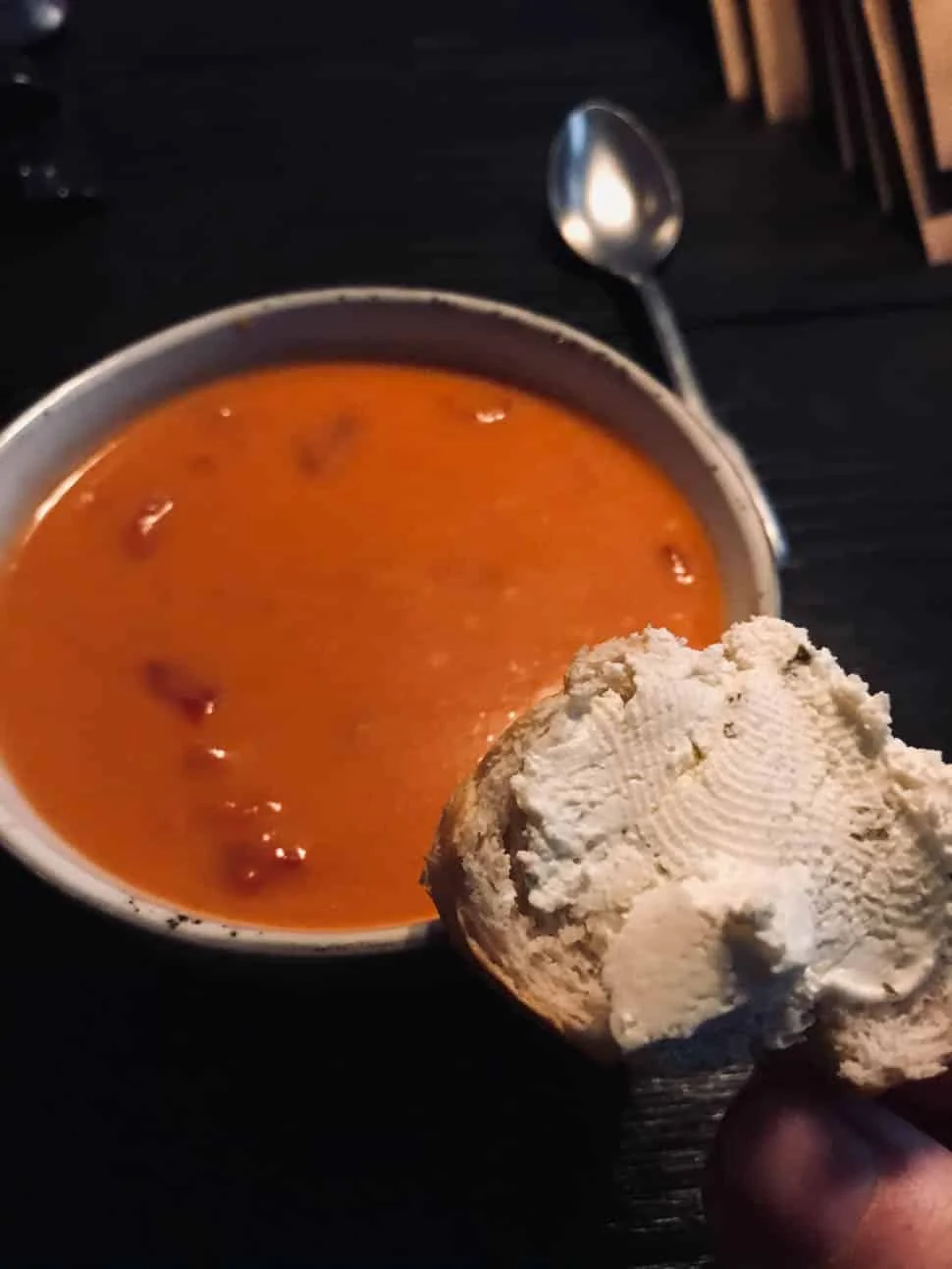 Het is door de lockdown heel lang geleden, maar ik had nogal een race-dag vrijdag. De helft van de dingen die ik moest of wilde doen lukte niet waaronder koken. Ik stelde voor een soepje op te warmen, omdat ik daar ook wel zin in had en het zou lekker makkelijk en snel zijn. Met een stokbroodje met paturain erbij.