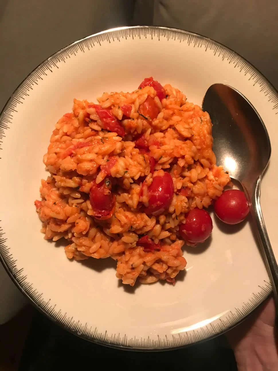 Dit is een deel van een gerecht dat ik voor OMF maakte. Het is een orzo gerecht en dat wat je hier ziet is niet de complete maaltijd die binnenkort op OMF verschijnt. Lekker was het wel, en het deed weer een beetje denken aan de lentedagen die eraan komen :-)