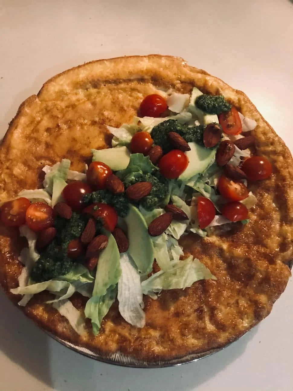 Ik was toe aan gezonde happen. Dus ik plande de week er vol mee en startte met deze omelet-wrap met ijsbergsla, zelfgemaakte pesto, avocado, citroen, cherrytomaatjes en amandelen. Iets wat ik wel eens vaker gemaakt heb en zo af en toe komt hij weer eens terug in onze eetplanning. Heel lekker, en eentje is voor mij genoeg.