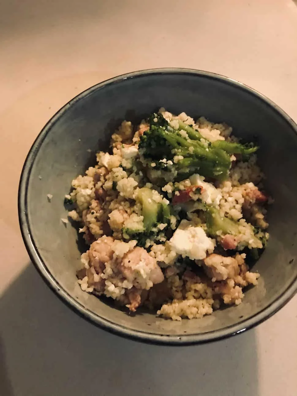 Woensdag maakte ik een couscous gerecht met gebakken kippendijen, spekjes, broccoli, witte kaas en citroen. Eigenlijk een gerecht met een twist op basis van iets anders wat ik wel eens maak.