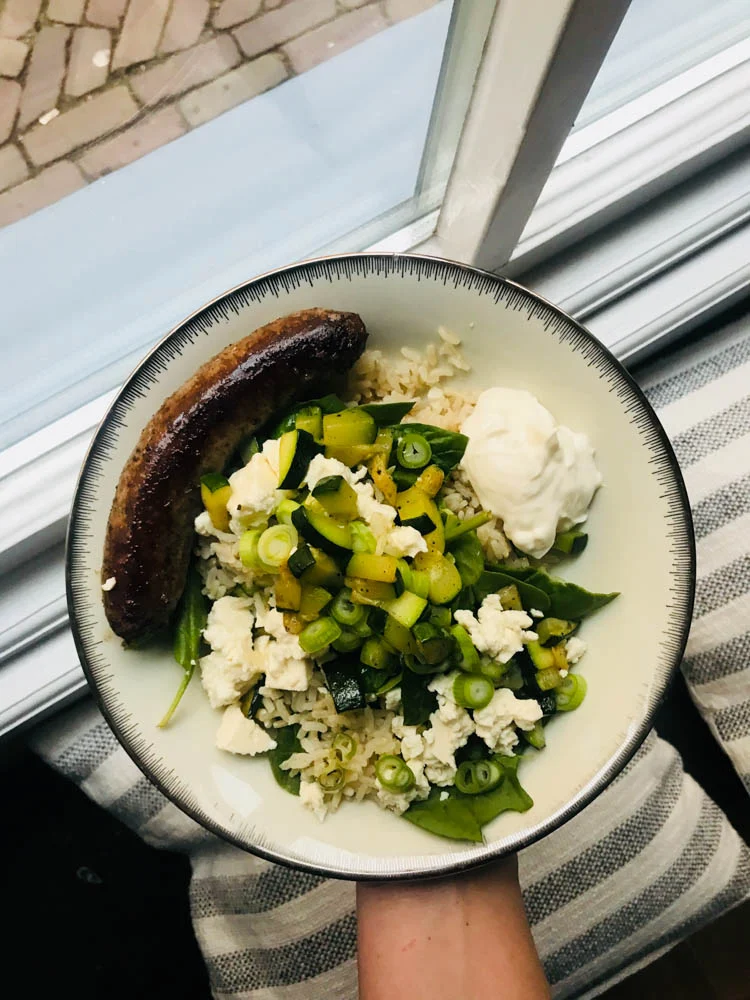 Ik wilde maandag een salade maken van courgette, feta, bosui en spinazie. Met een mix van de Appie: Bulgur/Quinoa. Maar jongens, deze mixen hebben ze dus bij ‘mijn’ AH uit het schap gehaald. Als in; komen niet meer terug. Be-lachelijk. Top zijn die mixen. Vooral handig en snel in gebruik. Toevallig tipte ik er een vriendin laatst over en ze vertelde me vorig weekend nog dat ze nu standaard 3 van die zakken in huis had. Gaat nu dus niet meer. Zonde Appie Heijn. Zorg er maar snel voor dat ze weer terug komen. Erbij trouwens een runderbraadworstje. Vonden we er wel lekker bij. En de mix werd vervangen door zilvervliesrijst.