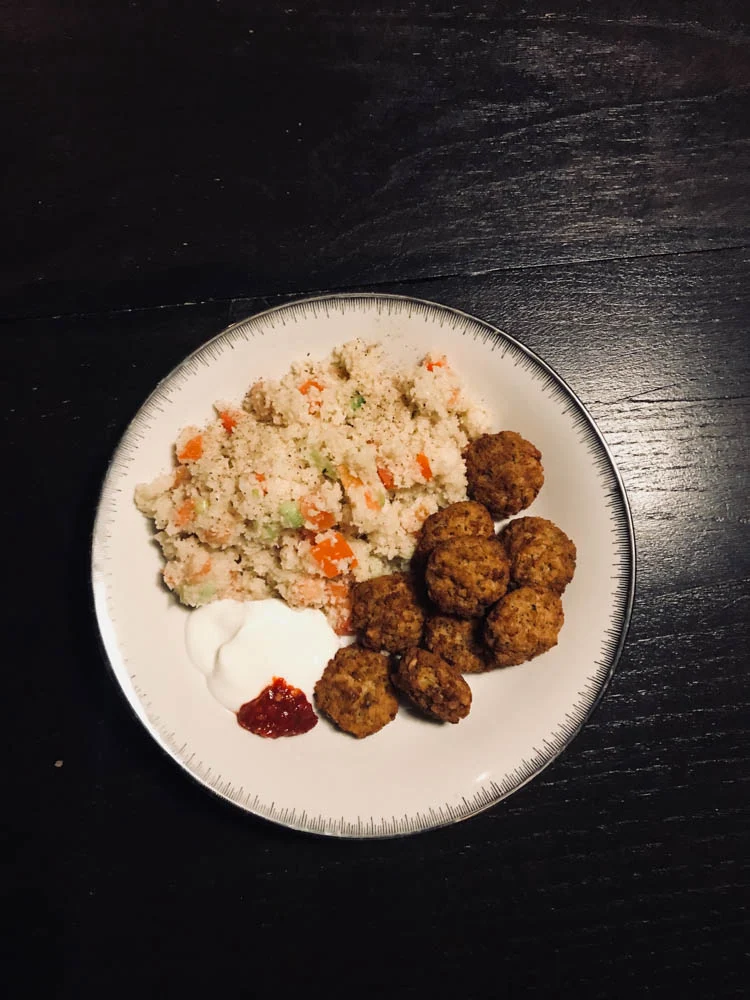 Als de bloemkolen voor scherpe prijsjes verkocht worden, dan weet je wel hoe laat het is. Bloemkoolcouscous. En ik had een flinke unit ingeslagen dus ik had voor 2 dagen couscous. Dinsdag aten we het met falafel.