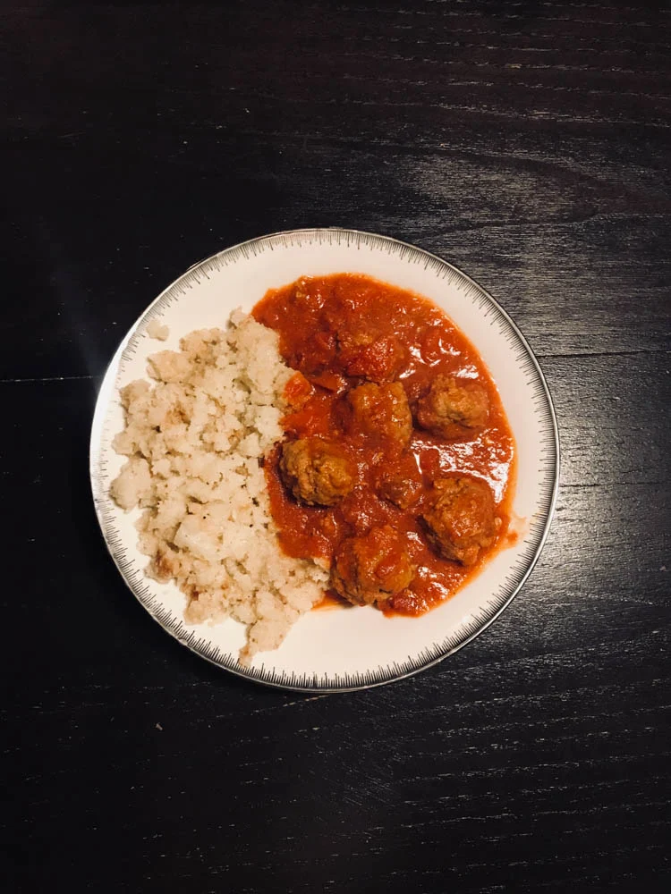 En woensdag aten we het met gehaktballetjes in pittige tomatensaus.