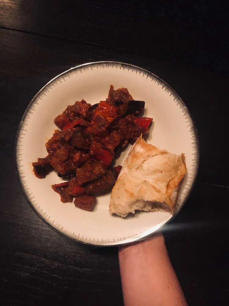 Gisteravond was het weer gewoontjes ;-) We aten wel erg lekker. Ik maakte vrijdag een stoofpotje van aubergine en chorizo voor OMF, dus dat stond nog in de koelkast. Lekker makkelijk!