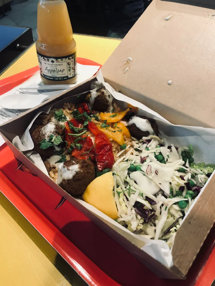 Yes! Op naar Praag! Ik vertrok vanuit mijn werk met de trein naar Schiphol en kwam daar rond half 6 aan. Ben gelijk even op zoek gegaan naar wat lekkers; een rijstsalade met falafel.