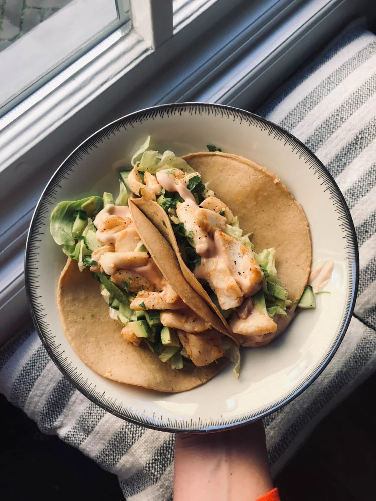 Ik had vrijdag een aardig drukke dag met o.a. een paar nieuwe recepten voor OMF die ik ontwikkelde. Kwam goed uit dat ik dit rond etenstijd klaar had; taco’s met vis en cocktailsaus.