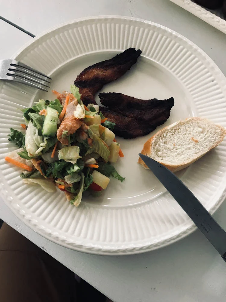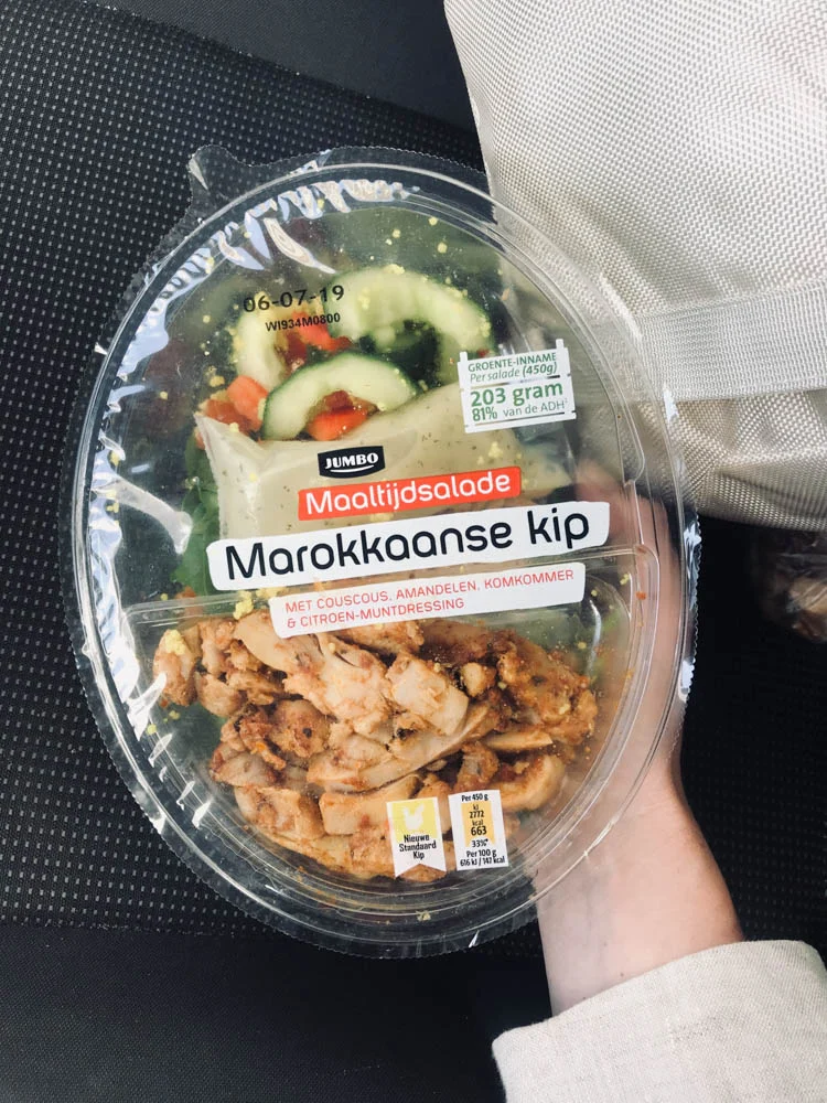 Zoals wel vaker op de woensdag; even lekker makkelijk. Ik reed weer door vanuit mijn werk naar Apeldoorn om die avond te trainen en les te geven dus ik haalde voor ons allebei een maaltijdsalade.
