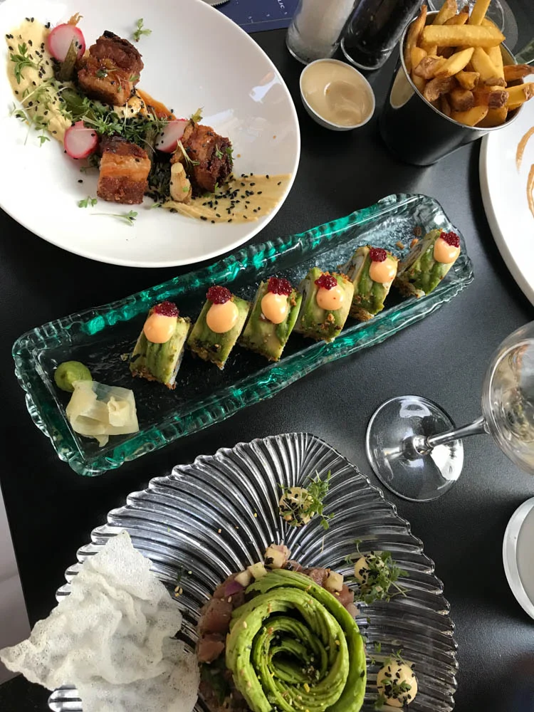 We hadden zin om uit eten te gaan en het kwam ons natuurlijk ook erg goed uit. Het weer was prachtig dus we aten buiten op het terras bij Jackies. Ik bestelde hier een paar voorgerechten als hoofdgerecht omdat me deze allemaal heel erg aanspraken, meer dan de hoofdgerechten. Sushi, tonijntartaar en buikspek.