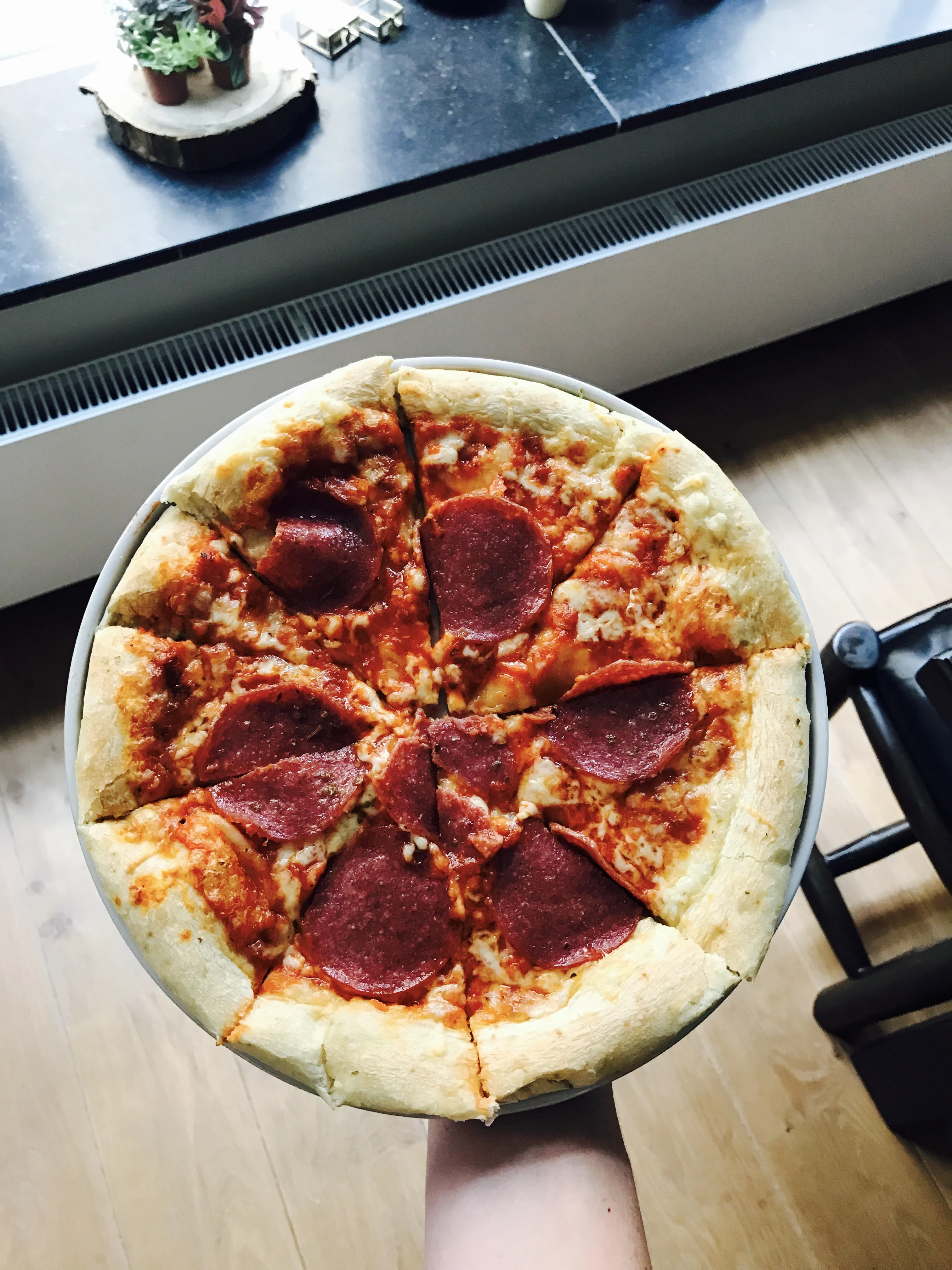 Snelle hap dus! Ik was druk met alle taarten dus ik had eerder al bedacht dat we wel een patatje zouden kunnen halen. Het werd een pizza, ook prima.