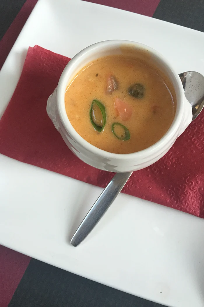 En ik had geen voorgerecht besteld, maar dat vond de kok toch wat ongezellig. Dus ik kreeg een mini vissoepje. Leuk!