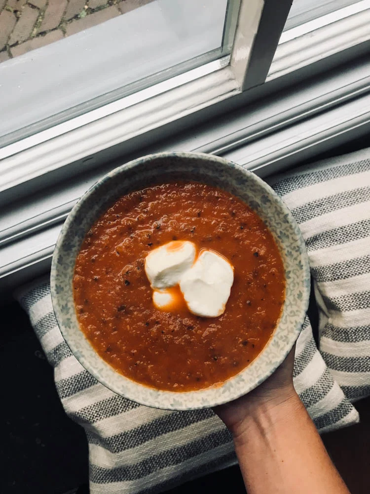 Ik had van mijn collega weer een mega courgette uit haar moestuin gekregen. Was ik weer heel blij mee en omdat zo’n enorme unit zich perfect leent voor een soep, maakte ik dat deze keer ook weer. Een tomaten-courgettesoep met veel lekkere kruiden erin. Ik geloof dat ik wel voor 5 personen soep uit deze pan kon halen dus ik stopte nog een paar bakken in de vriezer. Makkelijk; waarschijnlijk eten we het binnenkort weer.