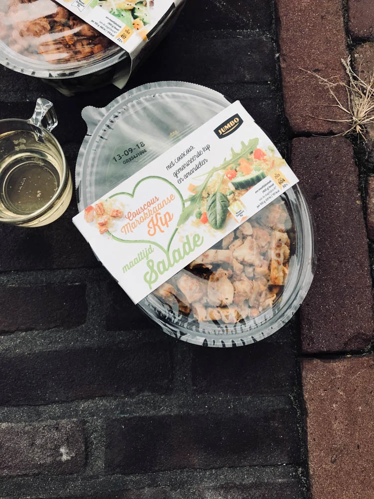 Maandagavond moest ik werken dus ik at samen met een collega een makkelijke en snelle salade die ik bij de supermarkt haalde. Veel keuze was er helaas niet maar het werd deze lekkere met Marrokkaanse kip. Prima!