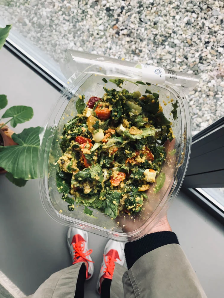 Ik vergat bijna een foto te maken, maar dit is wat ik woensdagavond at. Een makkelijke hap want ik moest vanuit mijn werk gelijk door naar de Barbell Club in Apeldoorn om eerst zelf te trainen en vervolgens les te geven. De komende woensdagen blijven er denk ik nog even zo uitzien en dan gaan we mijn lesdag waarschijnlijk naar de vrijdag verplaatsen. De salade: eentje met couscous, spinazie, gegrilde groenten, witte kaas en een balsamico-roze peper dressing. Van de Appie, goed te doen.