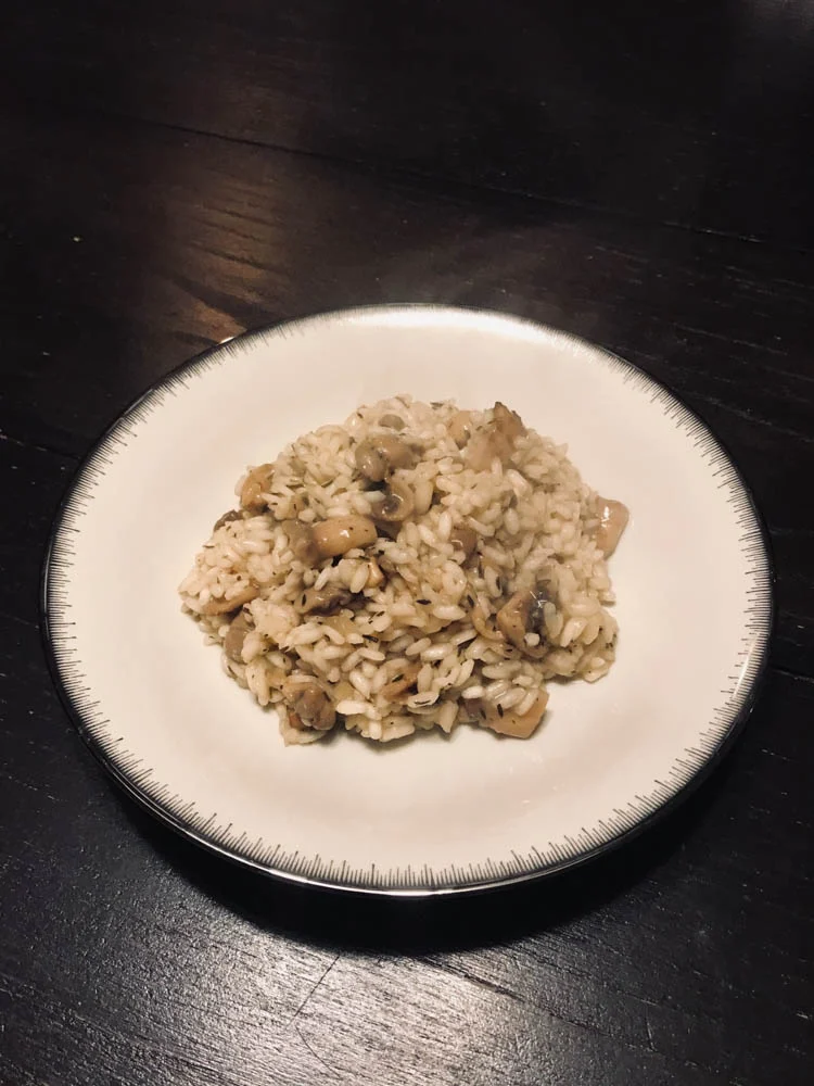 Het kan zo simpel zijn; een lekkere zachte risotto met champignons en tijm. Ik maakte het gisteravond voor alleen mezelf want Tobias at ergens anders en dus is er nog een hele pan over. Ik kan niet zo goed voor 1 persoon koken geloof ik.