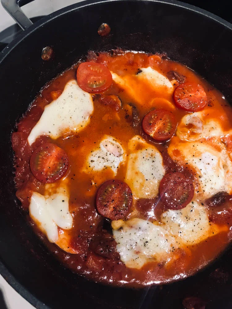 Shakshuka! Ik had het al een tijdje niet gemaakt dus had het om mijn planning gezet. Perfect gerecht om dat in te doen wat je nog over hebt, mits het een beetje bij elkaar past natuurlijk. En deze was erg goed gelukt, heel smaakvol.