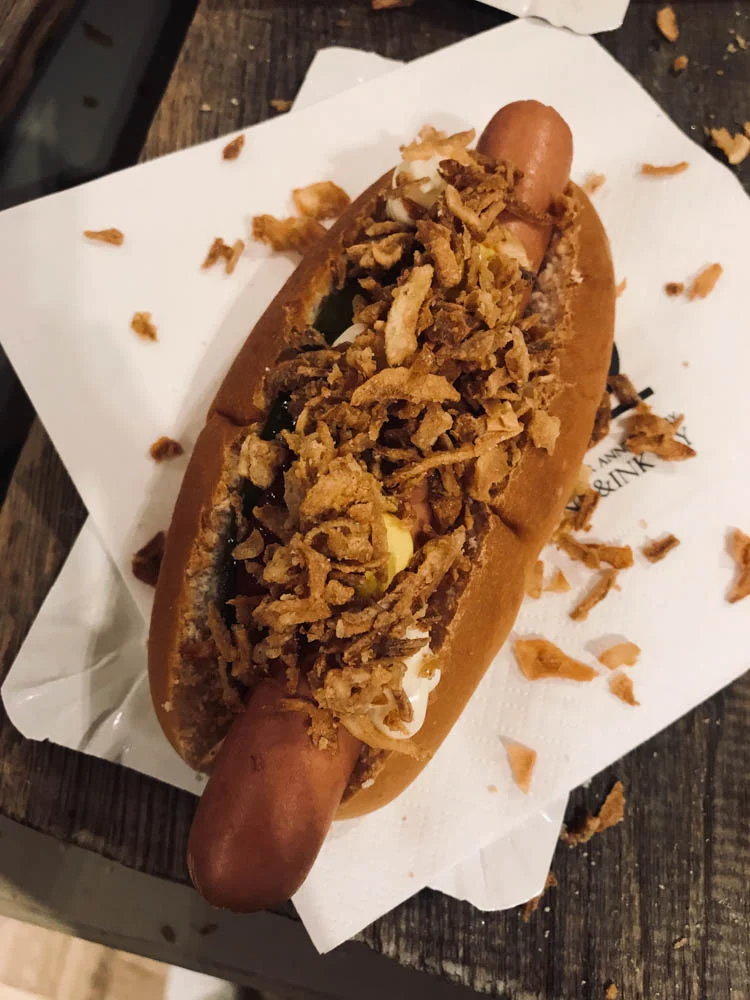 Ik stond vorige week zondag op de ModeFabriek in de RAI in Amsterdam op de stand van Penn&Ink N.Y. Ze bestaan dit jaar tien jaar en daarom bakte ik (als vanouds) een hele lading aan gebak. Het werden brownies en blondies, en ik bakte in totaal 230 stuks. We hadden gerekend op 100 stuks per dag om uit te delen maar het liep iets anders; binnen 3 uur was alles op. Dan hebben ze in ieder geval gesmaakt zullen we maar zeggen ;-) In de middag maakte ik hotdogs (chef catering hier) voor de bezoekers en toen het spektakel ten einde liep, at ik er zelf ook nog eentje. Met mayo, mosterd, ketchup, augurk en een flinke lading gebakken uitjes.