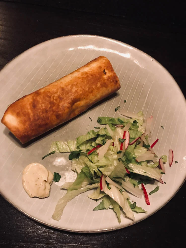 Die grote rol die je hierboven ziet is gevuld met o.a. tonijn en kaas. Een tuna melt wrap dus. Erbij maakte ik een beetje salade en ik had een pot truffelmayo in huis dus dan weet je het wel, dat gaat overal bij.