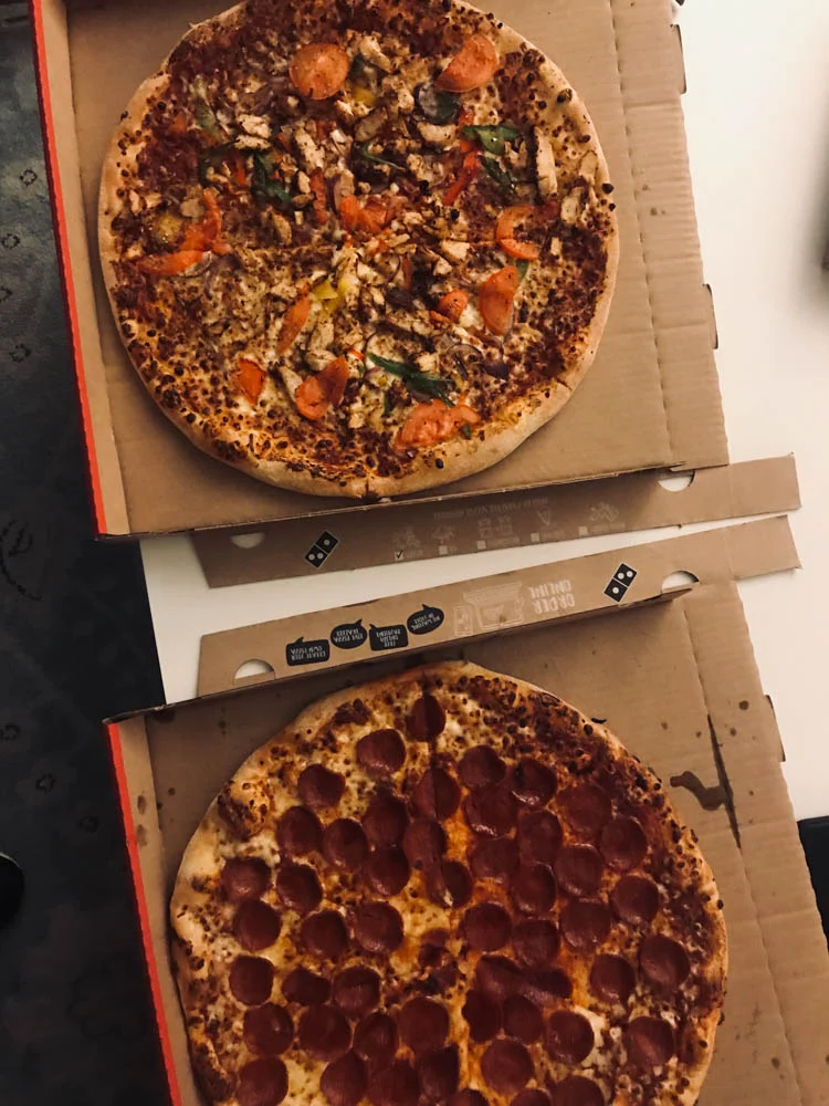 Op mijn werk organiseerden we een evenement waar ook Sabine bij aanwezig was (en een presentatie hield!). Het was een toffe dag, maar ook een lange dag. Nadat iedereen weg was bestelden we een paar mega pizza’s aan de overkant, bij Domino’s. Voor een keer wel lekker.