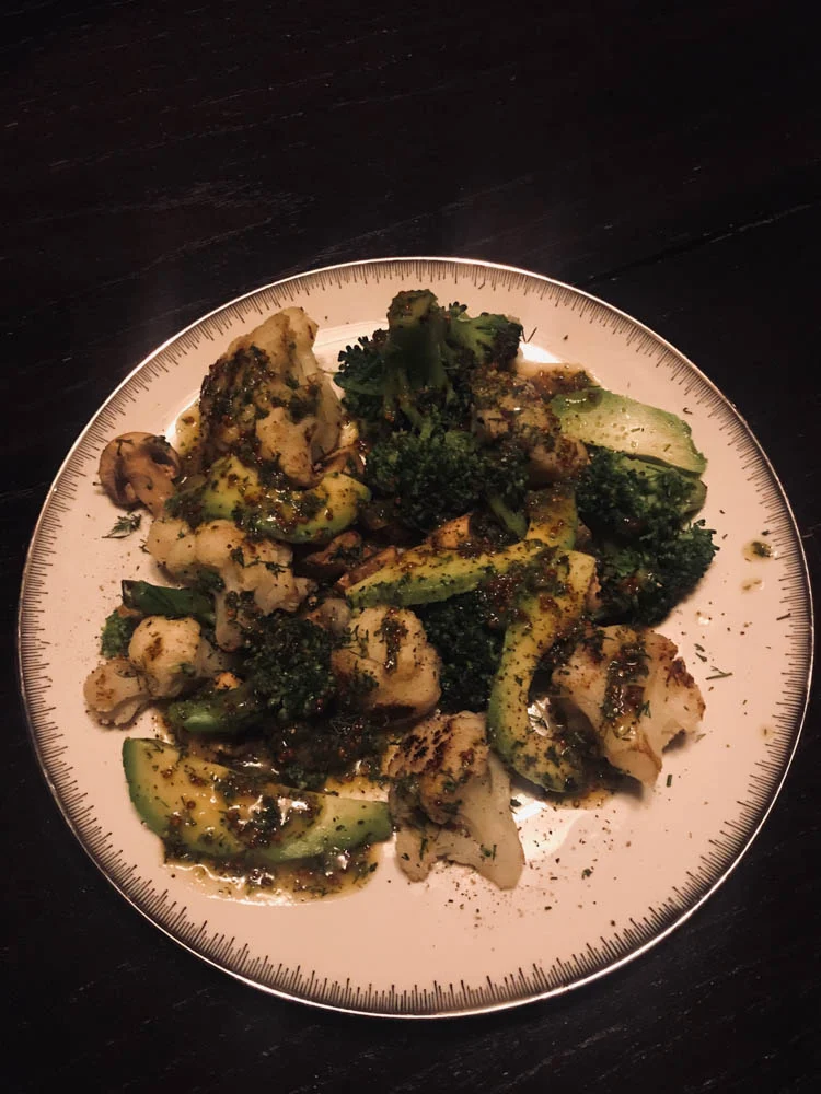 Voor dit gerecht hoefde ik niet veel in huis te halen en het is ook nog eens hartstikke gezond. Oorspronkelijk maakte ik het met zalm, maar die verving ik deze keer door champignons. Het is deze, maakte ik een tijdje geleden voor OMF. Heel smaakvol!