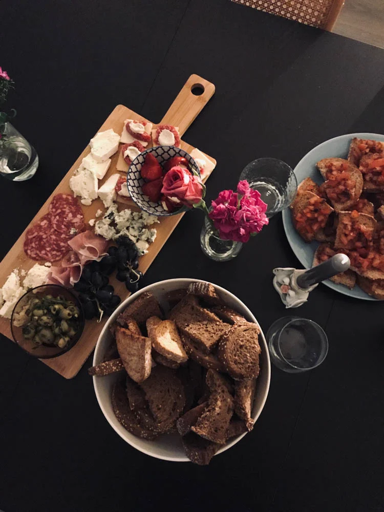 Ik sloeg vrijdagavond het eten een beetje over want ik had een wijnproeverij bij een vriendin thuis, en al einde middag ben ik haar gaan helpen met het maken van de hapjes en drie grote borrelplanken. Dus met hier en daar een wijntje om te proeven, at ik tussendoor ook van alles wat op tafel stond. En er was veel!