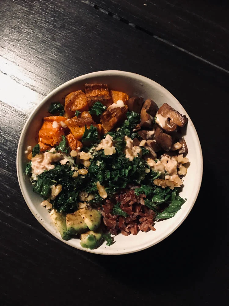 Mijn werkdagen lopen in het weekend soms een beetje door als ik daar zin in heb. Dan maak ik nog even een gerecht voor OMF omdat ik iets bedacht heb en dat was ook gisteren het geval. Een buddhabowl, met gegrilde pompoen en gebakken boerenkool. En nog meer maar dat kun je binnenkort online lezen. In ieder geval; direct ons avondeten en dat was mooi makkelijk.