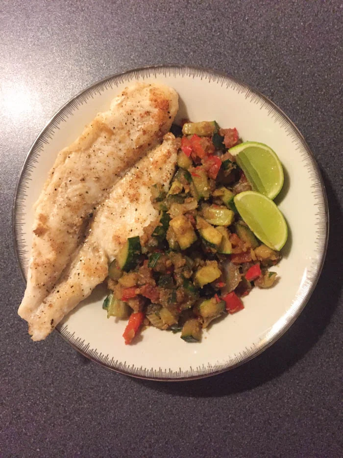Dit was lékker! Verschillende groenten op Thaise wijze. Ik bracht paksoi, wortel, paprika en courgette op smaak met gember, rode peper, knoflook, sojasaus en limoen. Het visje bakte ik met een beetje knoflookpeper. Dikke aanrader deze snelle en lichte maaltijd.
